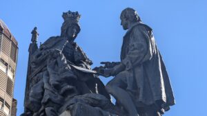 We walked back down the hill through forests to the city, it was about a 1.5km walk, and we enjoyed it. At the bottom of the hill we found a stated of Columbus being given his commission by the King, an interesting way to finish our explorations for the day.