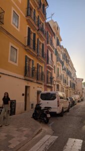 We left Val & Vic and got the 5:15 bus back to Palma. We walked down the hill to our hotel one street to the west of the main street. Once you get off main streets the real feel and character of towns / cities is revealed. Here was no different, the flashy lights and sounds gave way to relatively quiet residential streets / neighbourhoods. The buildings took on the 18th / 19th century feel we have seen routinely in our travels through Spain, 4 to 5 storey square sided buildings with small balconies on relatively narrow streets.