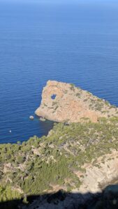 We set off in the direction of Soller, with a brief photo stop at Mirador de sa Foradada. This is one of Mallorca’s most iconic viewpoints. It gets its name (“Sa Foradada” meaning “the pierced one,”) from the 18-meter hole in the rocky promontory that is a local landmark. There is a large reception venue at the site that was once the residence of an Arch Duke who once owned a large portion of the coast in the area, it is said they charge 5000 euro an hour for use of the venue.