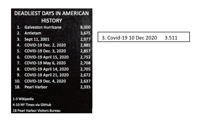 The USA has passed 20 million cases of Covid-19, the last million in 6 days, just 55 days to go from 10 million to 20 million cases.
