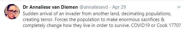 A Victorian Health Official is getting flack due to a personal twitter post comparing the Coronavirus with Captain Cooks landing 250 years ago.